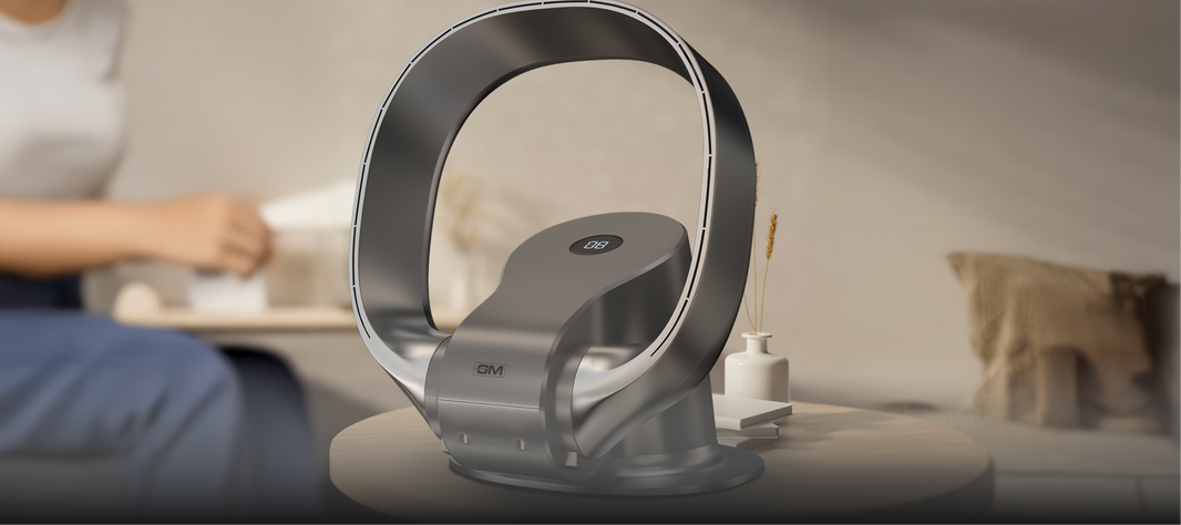 The GM G+ Artic Wind Bladeless Personal Fan is a sleek and modern fan designed for both style and functionality. Powered by a quiet BLDC motor, it delivers a smooth, powerful breeze without the noise or safety concerns of traditional blades. Its bladeless design makes it ideal for desktops, bedside tables, or even wall mounting. The fan also includes plasma purification, which helps neutralize odours and airborne pollutants, giving you cleaner, fresher air. With Wi‑Fi connectivity, you can control it via your smartphone or integrate with voice assistants like Google Home or Alexa. The unit supports 9 speed levels, an 8‑hour timer, and 80° oscillation, enabling highly customizable airflow. Comes with a remote for convenience, too.