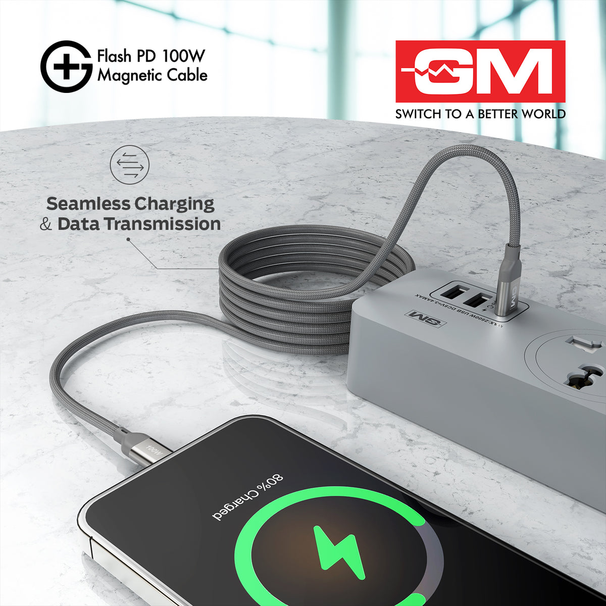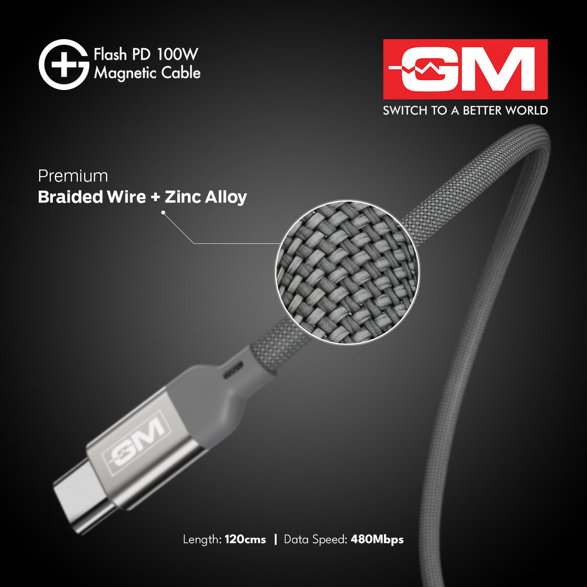 G+ FLASH PD 100W MAGNETIC CHARGING CABLE (Metallic Grey)