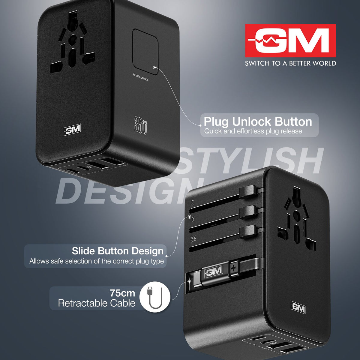 G+ 35W Travelease Pro with Retractable Cable – Black
